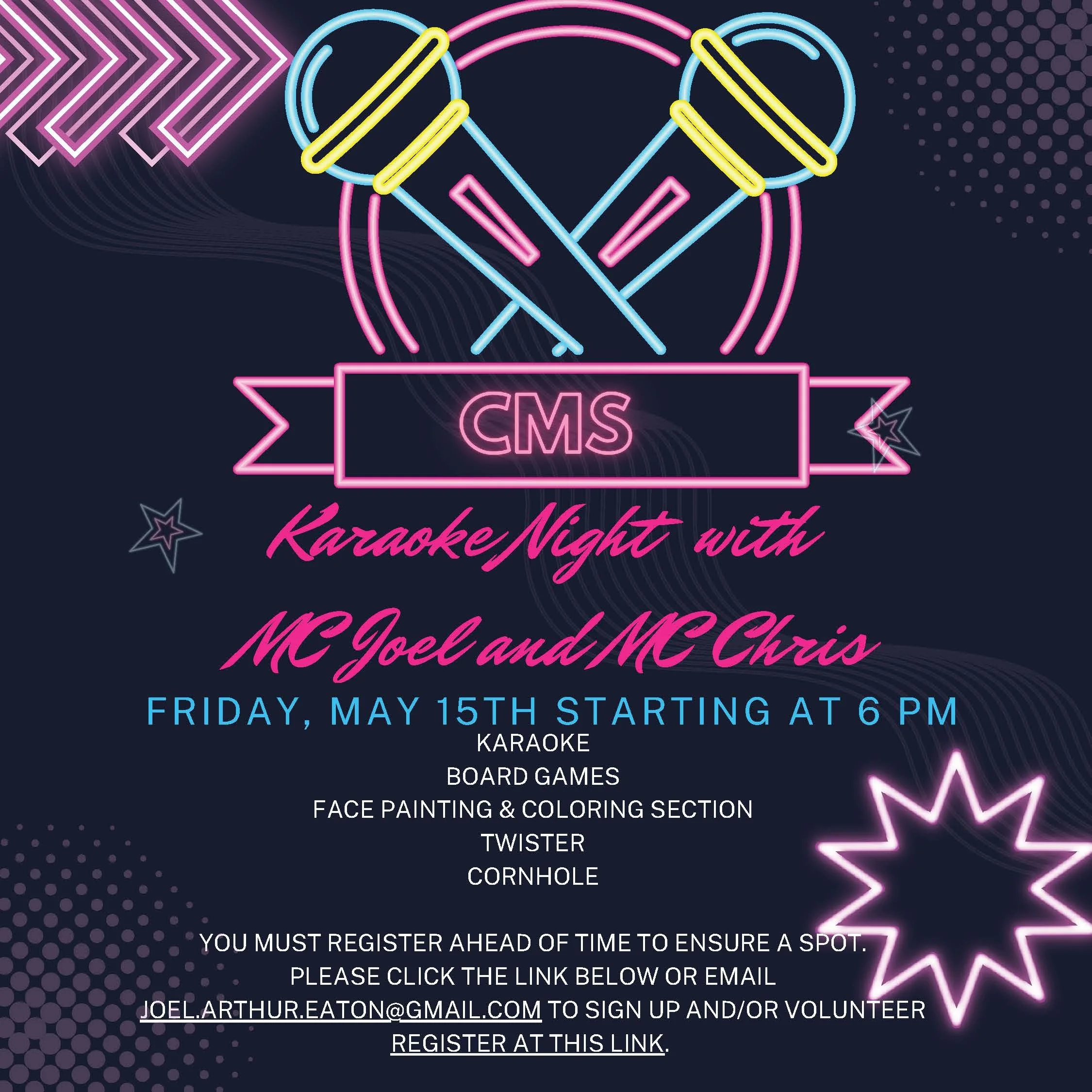 Join us for a night of fun, laughter, and music at CMS Karaoke Night! 🎤✨ Our CMS community is invited to showcase their singing talents in a supportive and lively atmosphere!